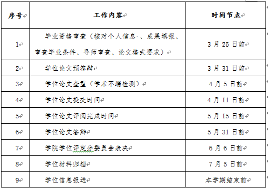 具体工作要求见附件,请各有关学院按照学位论文的工作程序,认真组织、严格把关、合理安排答辩时间,高质量完成研究生学位论文的相关工作。