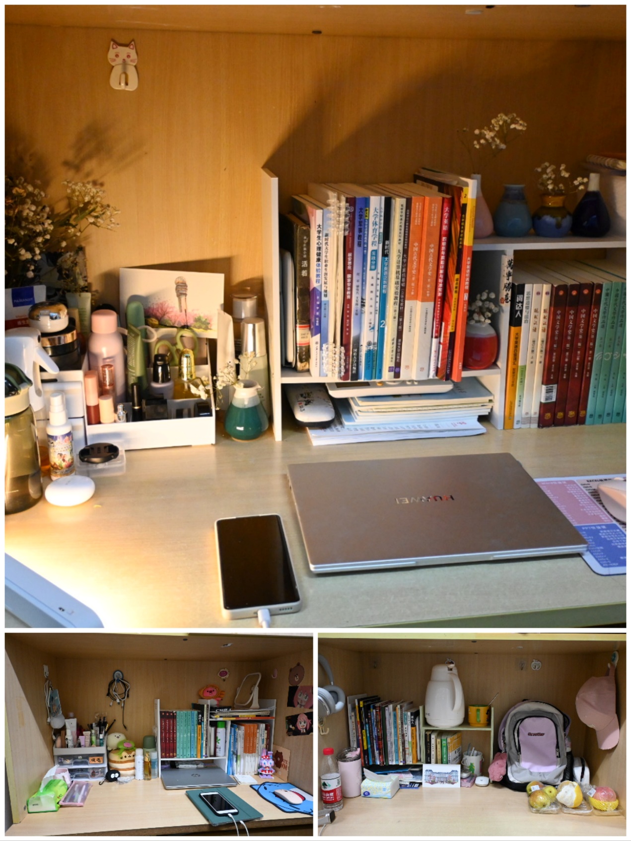 本次活动中,同学们可以从寝室装扮、寝室收纳、寝室才艺三个主题来展现自己宿舍的特色。在“寝室装扮”板块中,同学们用自己的巧思将朴实的原木书桌点缀上各种各样精巧的装饰;在“寝室收纳”板块中,同学们各显神通,充分发挥主观能动性,网罗各类收纳神器,将物品井然有序地安置在小小天地中;最后在“寝室才艺”板块,同学们通过合唱、小品、朗读等表现形式,展现寝室文化特色,在一片欢声笑语中,诉说着寝室的热爱和对未来的憧憬。