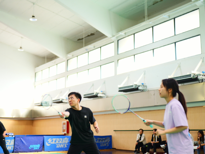 本次比赛共有24支参赛队伍,包括男双、女双、混双,每获胜一小局积一分,进行两轮,最终积分高的团队获胜。师生们以饱满的热情、积极的态度投入其中。各队团结合作、奋勇争先,扣杀、轻吊、上网扑扣,一招一式,展现了队员们的不凡球技,也表现出顽强拼搏的体育拼搏精神。最后,学院领导、老师为冠军队颁发奖牌。