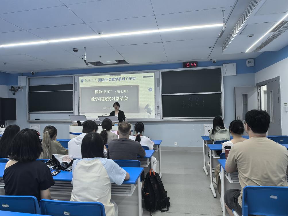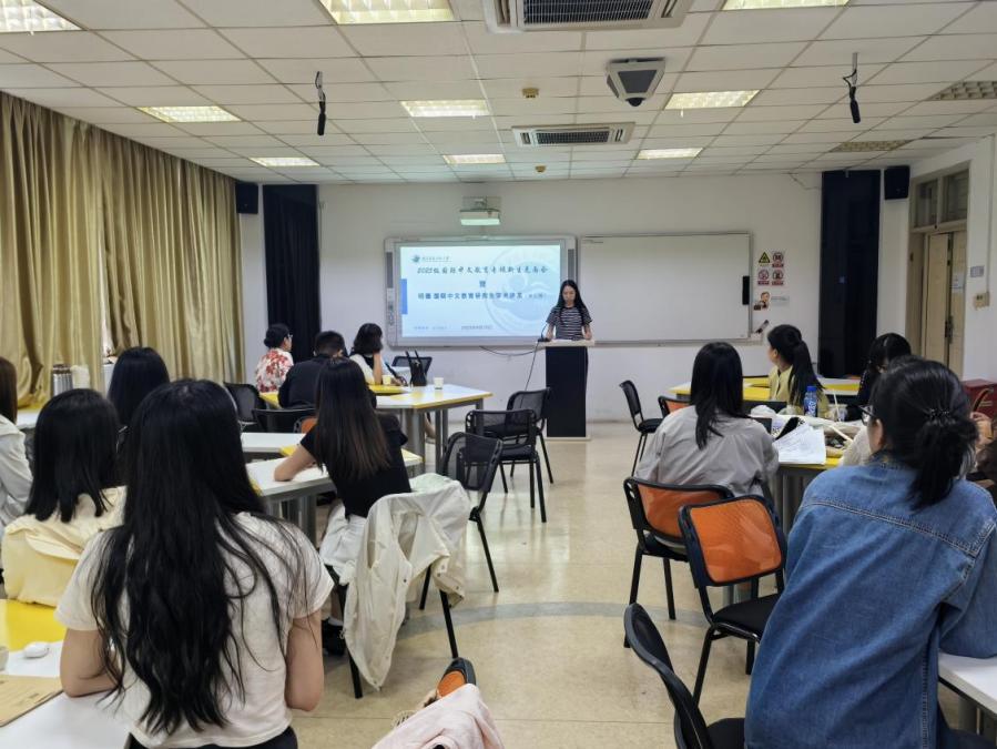 此次活动既是“迎新聚力”的相聚,也是“学术启智”的交流。它帮助2025级新生熟悉环境、明确方向,更增强了专业大家庭的凝聚力。除了学术沙龙之外,国际中文教育专硕学位点还定期组织“悦教中文”系列工作坊活动,致力于提升专业师生的国际中文教学实践能力。在最近一期工作坊中,徐开妍、张友燕两位老师针对已经结束和即将展开的实习实践与同学们展开交流,不仅明确了教学实践实习的具体安排、深入剖析了实习的重要性,还引导学生反思过往教学实践经验、共同探讨HSK教学中遇到的问题及解决办法,为外派实习学生高质量完成教学实践任务提供了经验支持与保障。