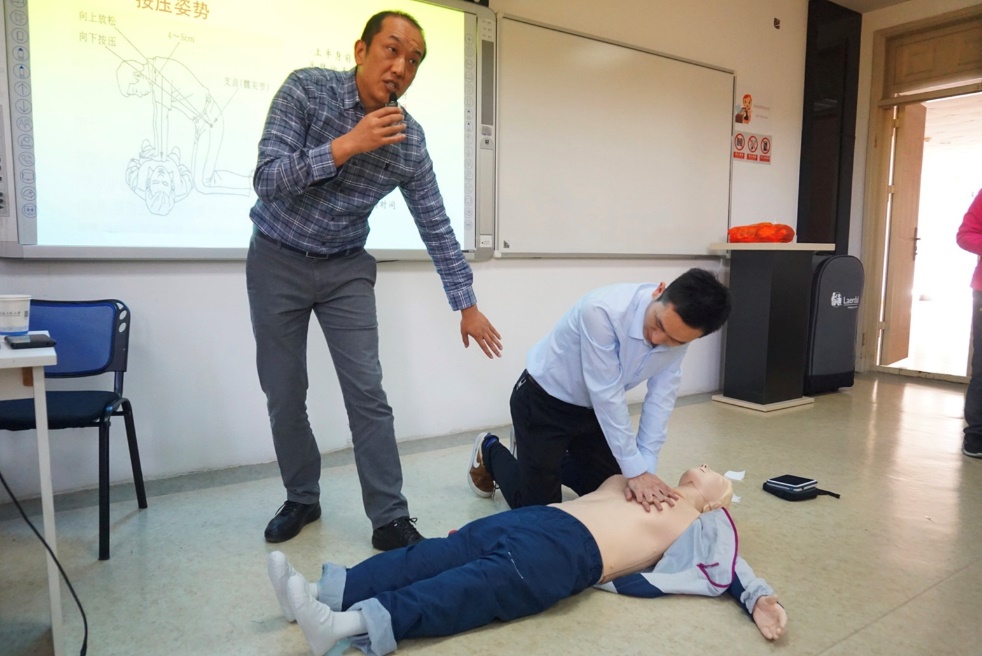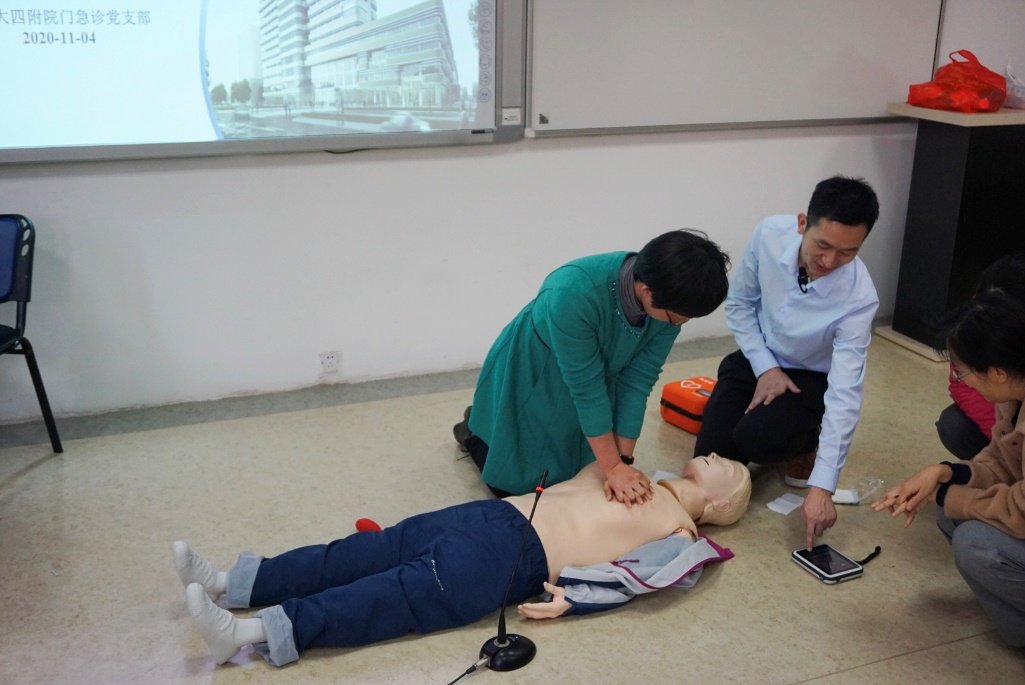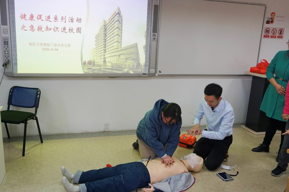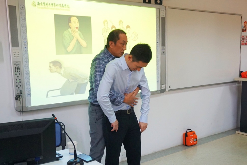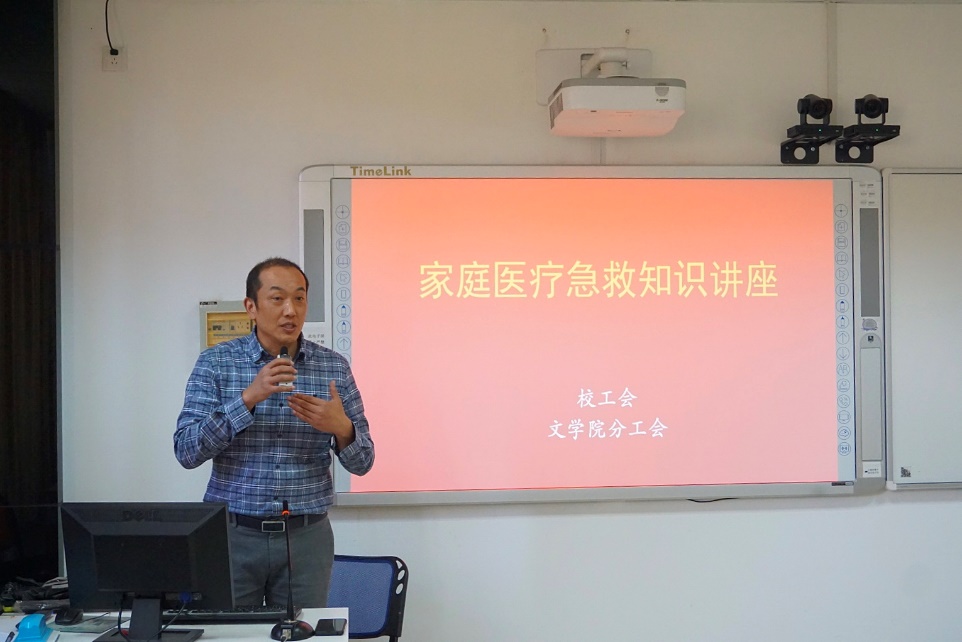 为给广大教职工普及生活常遇到的医疗应急抢救知识,关爱健康、关爱生命,11月4日下午,校工会、文学院分工会特邀南京医科大学第四附属医院急诊科主任、副主任医师胡东东,急诊科医生张臻来校为教职工普及心肺复苏、气道梗阻、意外伤害等急救知识。
