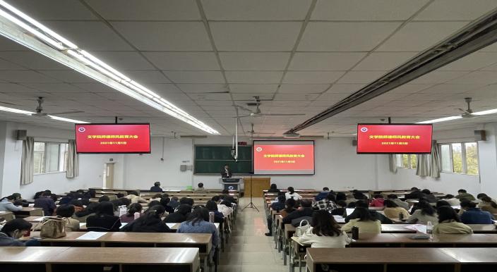 为进一步加强学院师德师风建设,引导全院教职工牢固树立“以德立身、以德立学、以德施教、以德育德”教育理念,进一步落实“立德树人”根本任务,引导教师抓好抓牢教学工作、弘扬爱岗敬业精神,文学院于11月5日下午在文德楼S418召开全体教职工大会暨师德师风教育大会,党委书记范勇、副院长赵霞(主持工作)、党委副书记、副院长吴鹏飞、副院长杜玉生、副院长郑友奇及文学院全体教职工参加会议,会议由党委书记范勇、副院长赵霞(主持工作)主持。