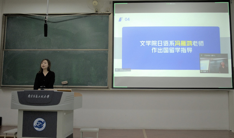 会上,国际合作与交流处谢瑶老师详细介绍了我校常有的出国留学项目和相关政策,对长期以来同学们面临的一些疑惑进行了统一梳理解答。接着,北京锐尔教育咨询有线公司的成荣老师在线介绍了后疫情时代留学变化、主流国家申请状况、海外申研录取标准、留学时间规划、留学绿色通道、绿色通道案例等方面。南京朗汀教育科技有限公司的朱艳文、楼振飞老师针对文学院各专业实际情况,在线介绍了留学日本和英澳的信息。