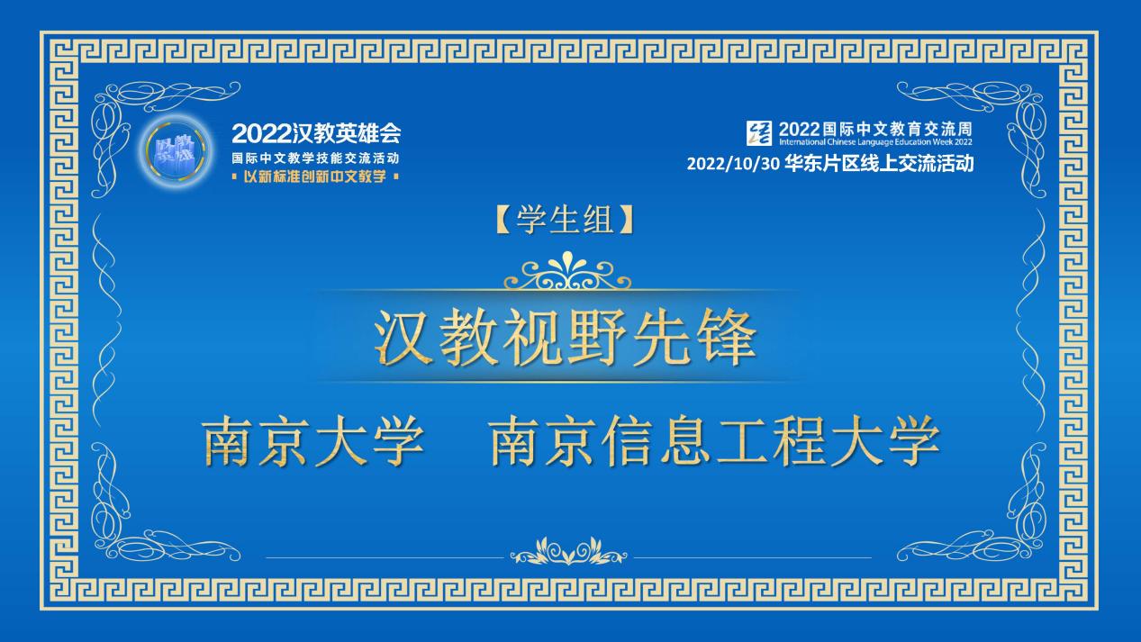 2022年10月30日,由教育部中外语言交流合作中心、全国汉语国际教育专业学位研究生教育指导委员会联合主办,华东师范大学承办的2022“汉教英雄会”华东片区国际中文教学技能交流活动圆满落幕。我院“中文+气象”主题课程代表团队在7个省(市)、49所高校的62支队伍提交的教学材料中脱颖而出,成功入围2022“汉教英雄会”华东片区线上交流名单,并且荣获“汉教视野先锋”荣誉称号!
