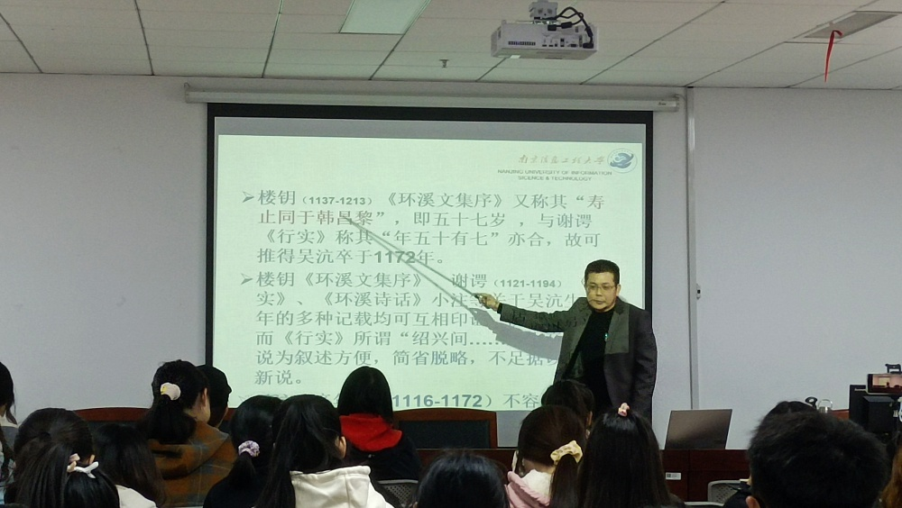 11月16日下午,由人文艺术教育中心、文学院联合举办的明德文化讲堂本学期第三讲在阅江楼337-338小报告厅举办,同时安排了线上直播。本期讲堂围绕宋人吴沆所著的《环溪诗话》所展开,由文学院周小山博士主讲,赵超副教授主持。