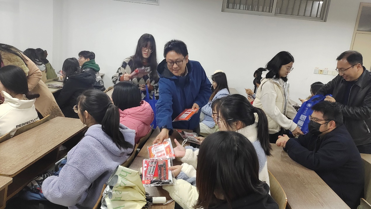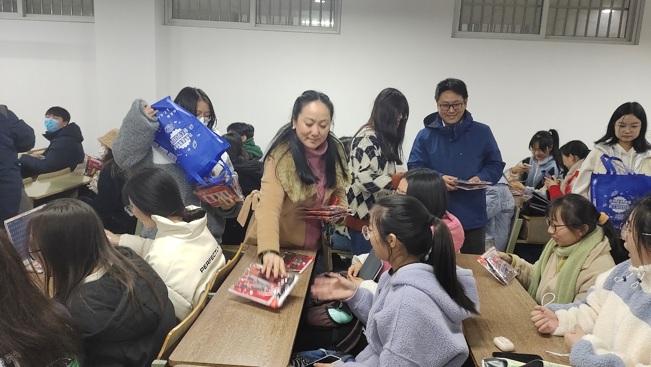 随后,全体院领导为考研学子赠送发放装有考研文具的“福袋”,在严冬里给予他们春天般的温暖,增强了他们备考信心,鼓舞他们不断奋进。