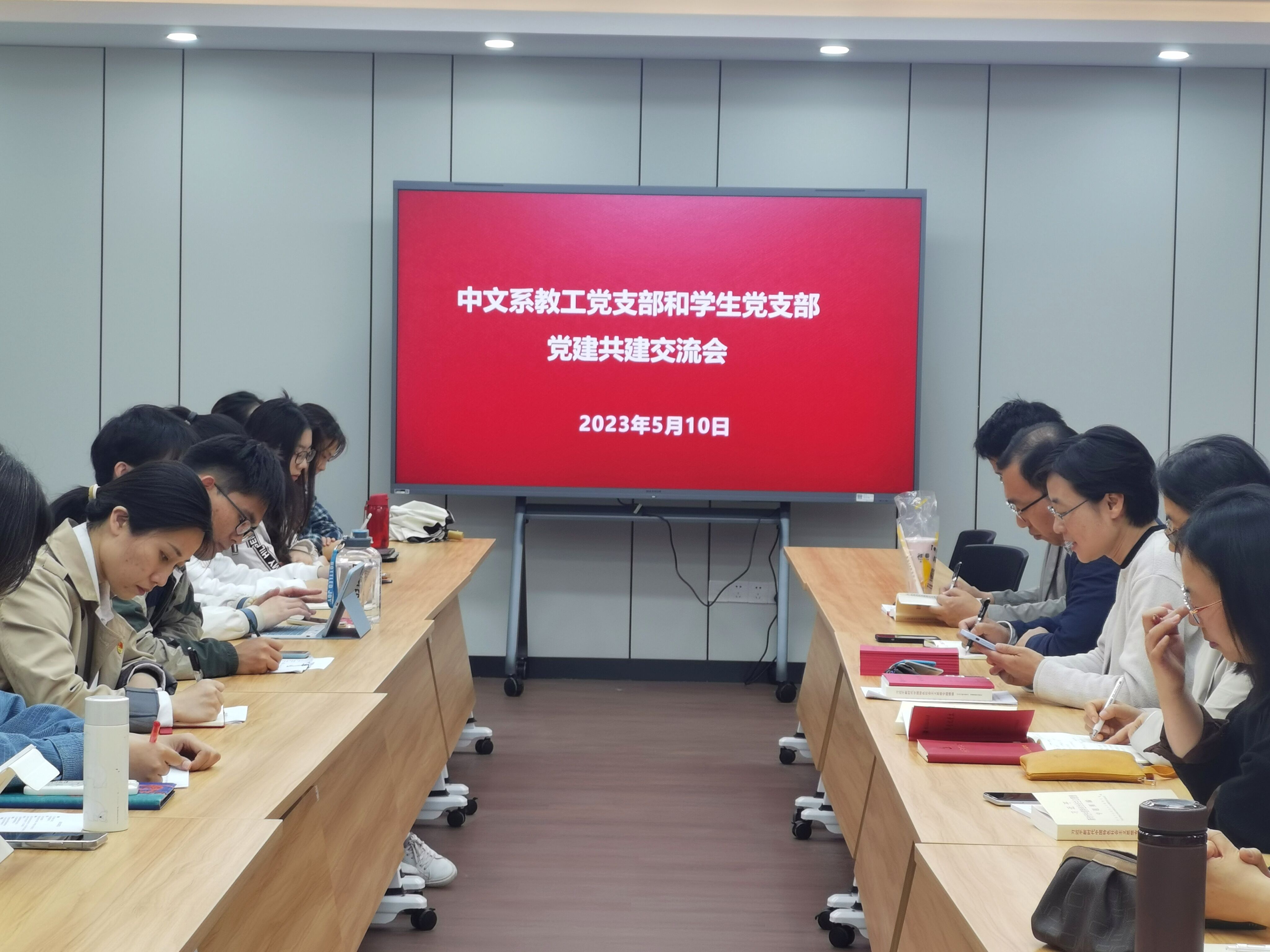 图1:中文系教工党支部和学生党支部党建共建交流会现场