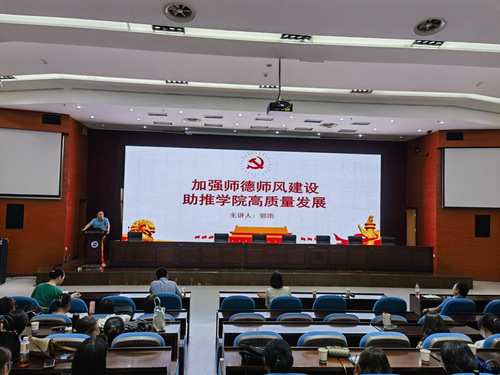 会议第二阶段,郭雨书记为全体教职工作题为“加强师德师风建设 助推学院高质量发展”的师德师风教育专题教育报告。郭书记从“四有”好老师、“四个引路人”、“四个相统一”、“争做黄大年式的好老师”等几个方面详细阐释了习近平总书记关于师德师风的重要论述和要求,并带领全体教职工一起学习了《南京信息工程大学教师职业道德规范》和《南京信息工程大学师德负面清单和失范行为处理办法》。他在报告最后要求学院全体教师认真贯彻落实习近平总书记在中共中央政治局5月29日第五次集体学习上的重要讲话精神,坚定理想信念、陶冶道德情操、涵养扎实学识、勤修仁爱之心,树立“躬耕教坛、强国有我” 的志向和抱负,坚守三尺讲台,潜心教书育人。