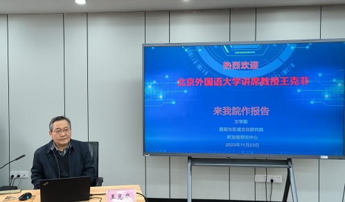 11月23日下午文学院主办的明德·语言文化跨学科高层论坛系列讲座在文德楼N402如期举行。本次活动,特邀北京外国语大学讲席教授王克非作题为“翻译即文化比较”的学术报告。讲座由文学院院长赵霞教授主持,文学院党委副书记(主持工作)郭雨、副院长杜玉生、学院部分教师、研究生及本科生参加本次讲座。