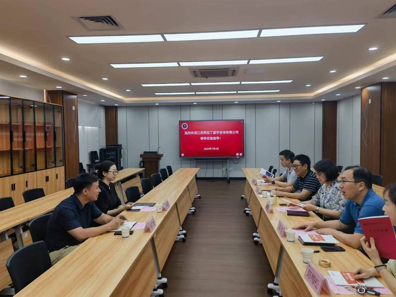 2024年7月4日,江苏阿拉丁留学咨询有限公司总经理刘丁发和留学部经理陈祎珺来院洽谈,旨在搭建并深化校企双方的合作桥梁与交流平台。院长赵霞、副书记(主持工作)郭雨、副院长杜玉生、英语系主任陈梅松和翻译专业硕士点负责人刘杰海参与交流。