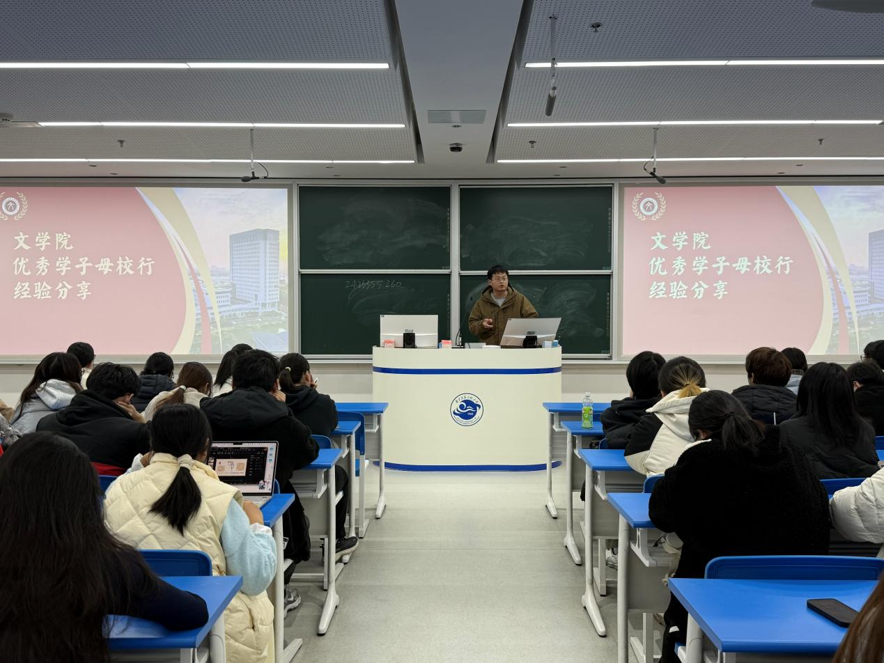 12月4日晚,文学院于明德楼N115教室成功举办“优秀学子母校行”专题经验分享会,全体2025级学生积极参与,会议由辅导员高天成主持。